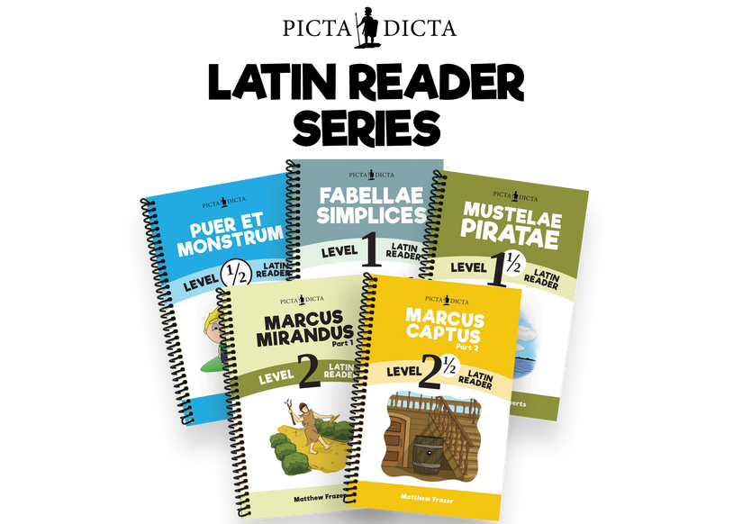 The Picta Dicta Latin Reader series is a collection of Latin readers suitable for students that are working through the Latin Primer Series or another Latin grammar curriculum. Each reader is numbered according to its grammatical difficulty (1/2 - 4 1/2) and comes with a complete Latin - English lexicon. Picta Dicta's app-based vocabulary builder is available for the first three readers, with the rest under construction.